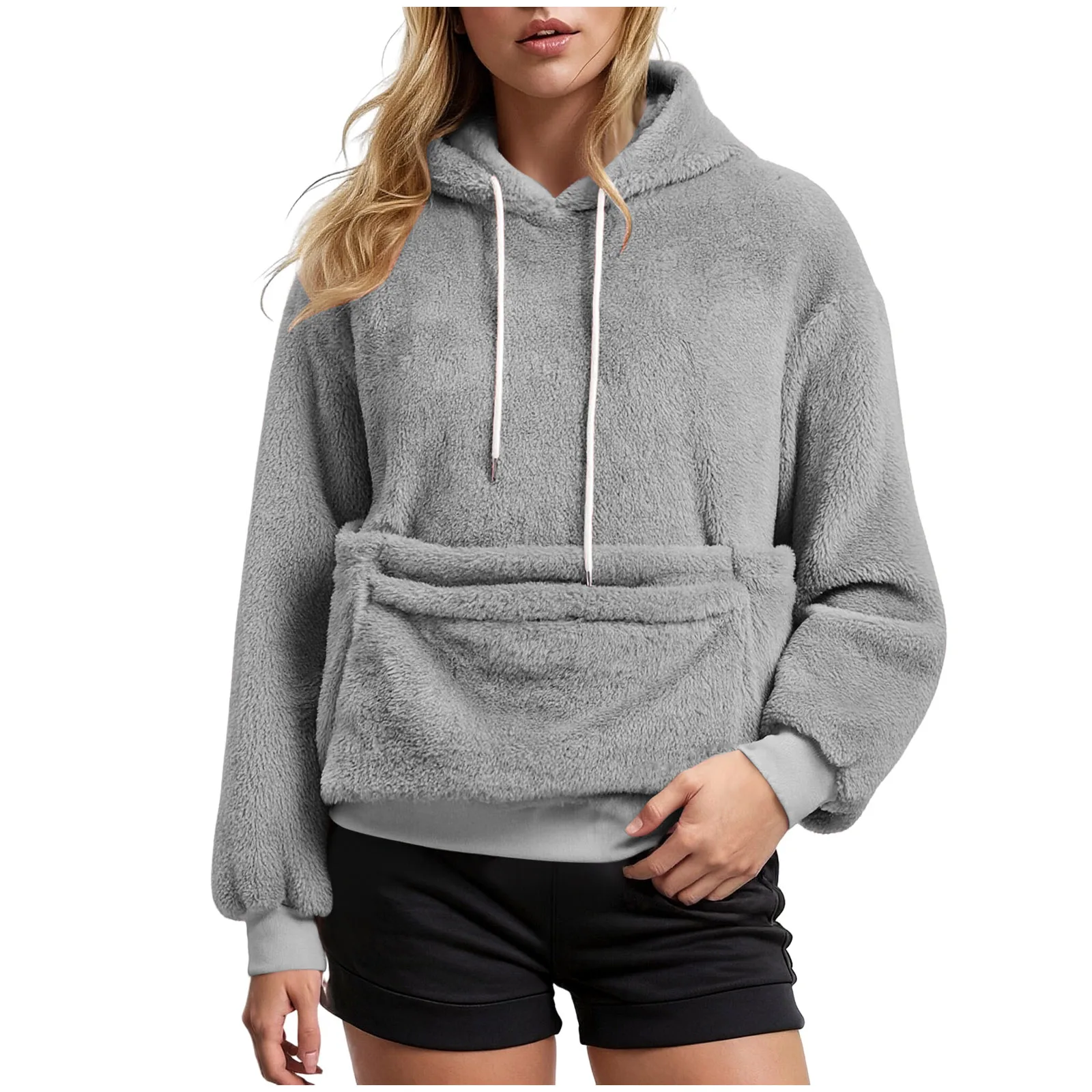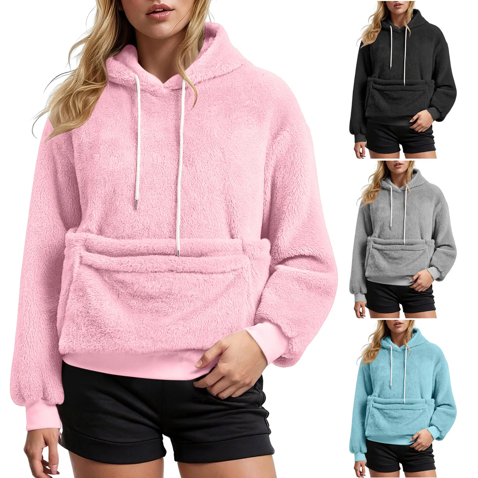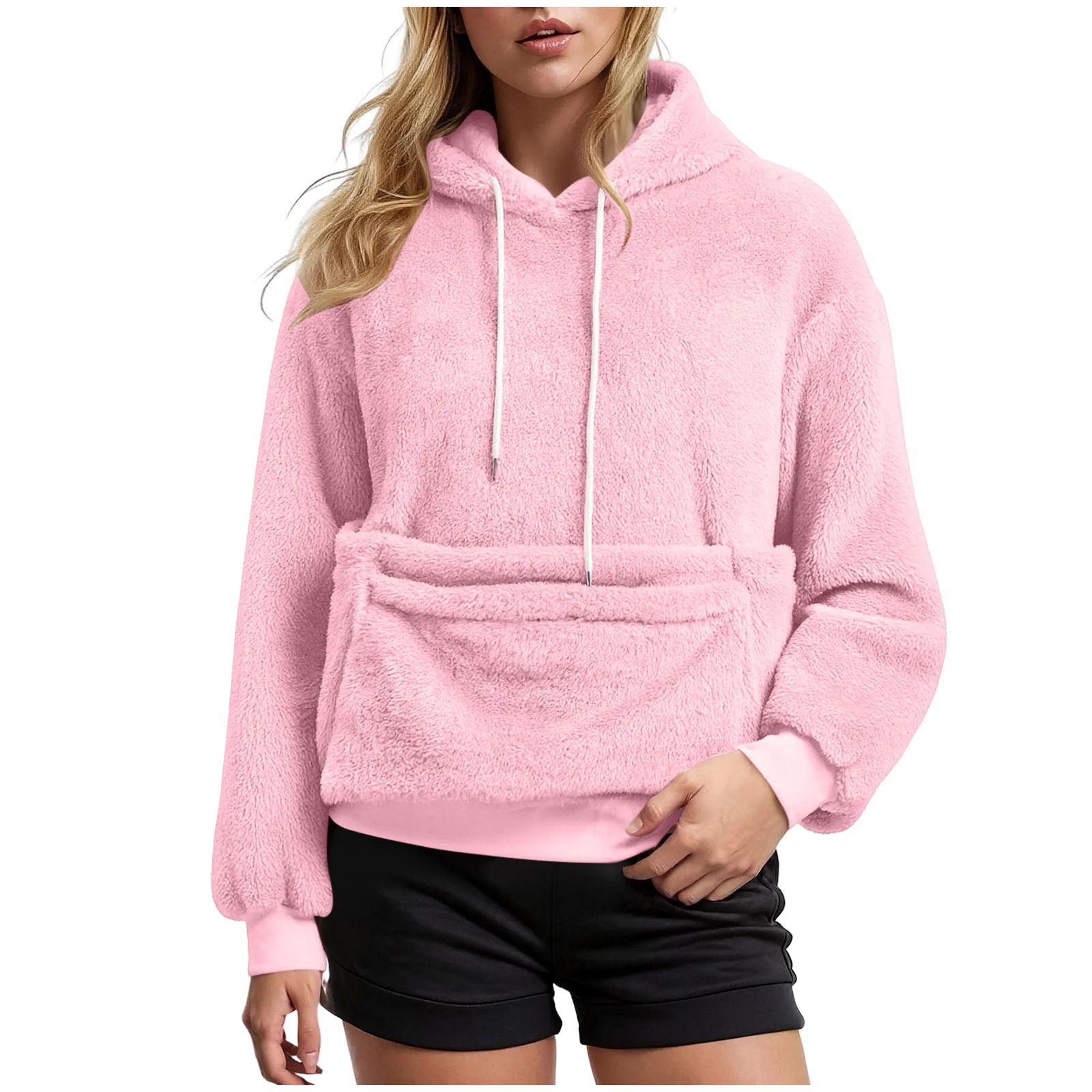 Women Fall And Winter Casual Fleece Solid Color Pet Pocket Hooded Sweatshirt Funny Pullover